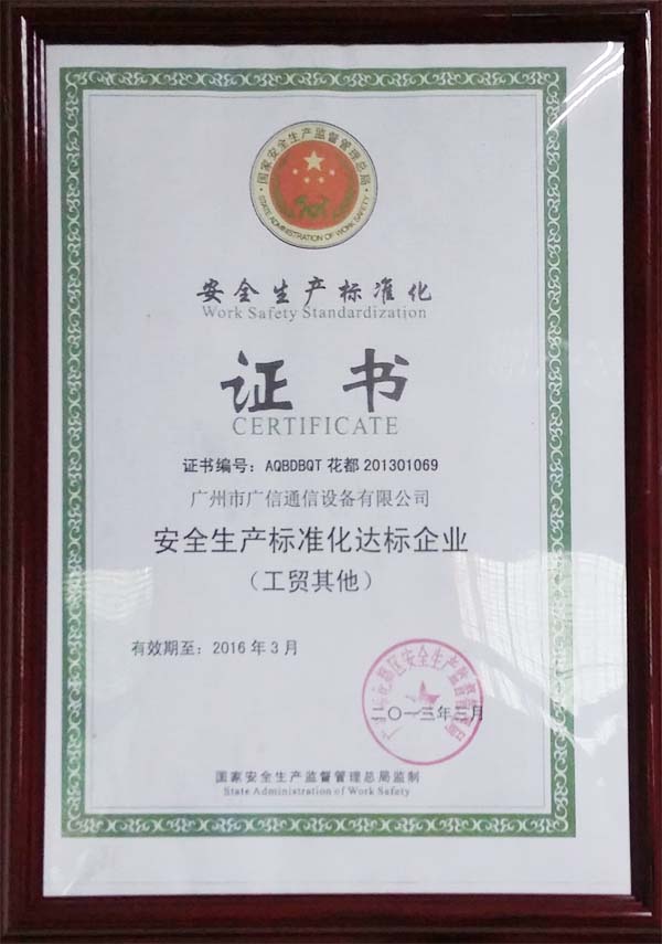 安全生产标准化证书
